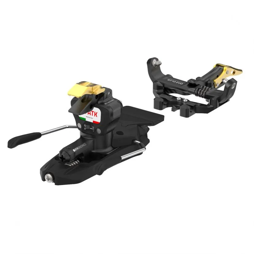 L’obiettivo di questo attacco premium è di primeggiare sotto ogni punto di vista per quanto riguarda la categoria touring: leggerezza (260 gr ovvero metà del peso del primo attacco concorrente con caratteristiche simili), ottime performance sciistiche, comfort di utilizzo e un design che porta RT 10 in cima alla collezione di gioielli ATK.