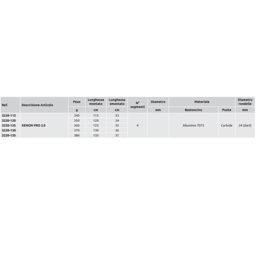 Realizzati in alluminio 7075 e punta in carbide, sono disponibili in cinque lunghezze (115, 120, 125, 130, 135 cm) e composti da quattro segmenti assemblabili rapidamente grazie al cordino interno in Kevlar.