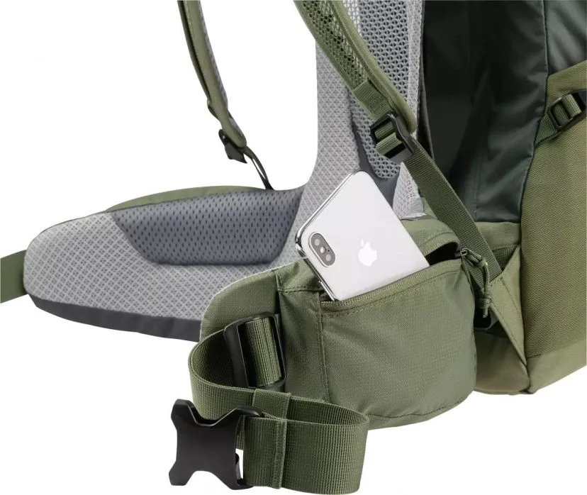 Nel suo spazioso scomparto principale c’è anche un vano per gli indumenti umidi ed un altro scomparto per gli oggetti di valore come portafogli, carta di credito o chiave. Le tasche laterali elastiche sono ideali per una borraccia e compatibili con i sistemi di idratazione. Oltre alla tasca sul cappuccio, hai anche un compartimento inferiore separato per un piccolo sacco a pelo. Per le emergenze c’è un’etichetta SOS in cui trovare contatti importanti in situazioni di emergenza.